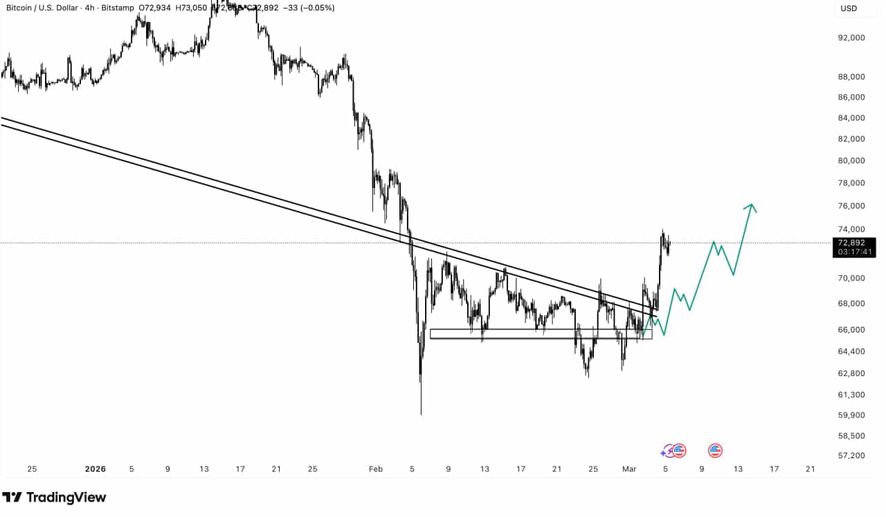 Went for a retest around the support of 65K then went back to our bullish scenario