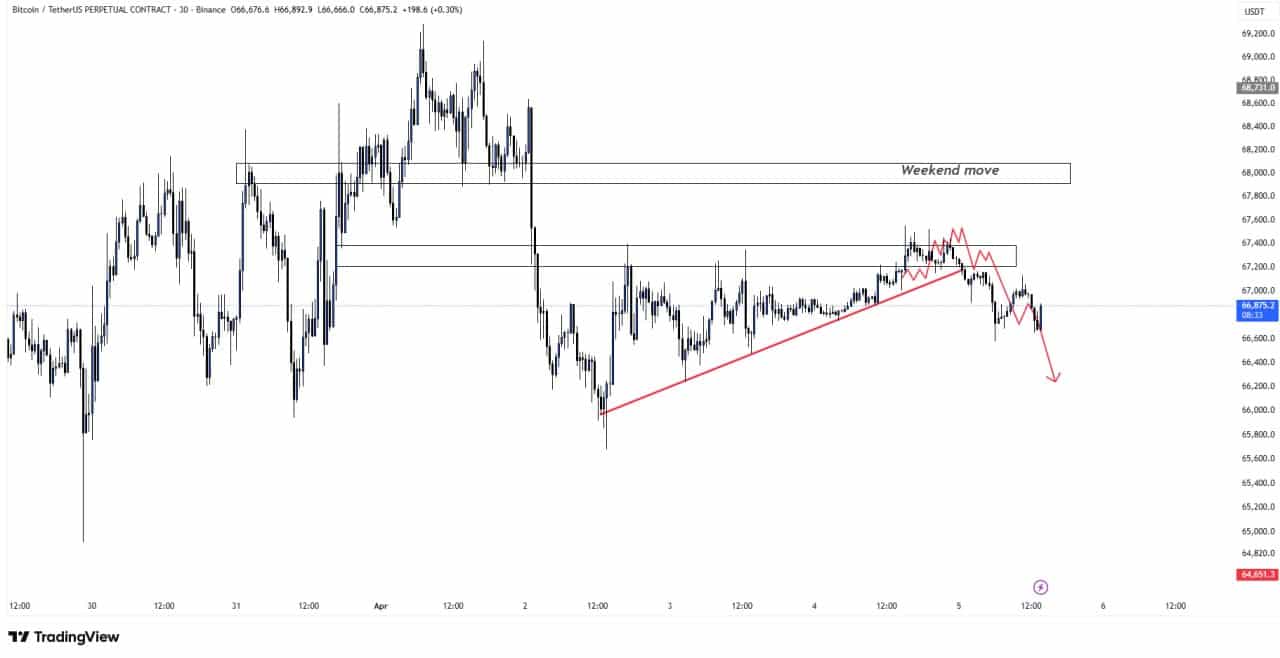 The weekend move I’m expecting from Saturday till Monday, we are forming a hidden triangle, we could be expecting a fake-out and reversal to the downside.
